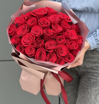 Розы сорта Ред Наоми известны своей красотой и элегантностью, символизируя любовь и преданность. Их красный, даже скорее бордовый цвет напоминает о горячих чувствах и страсти. Этот букет обязательно вызовет восторг у получателя.